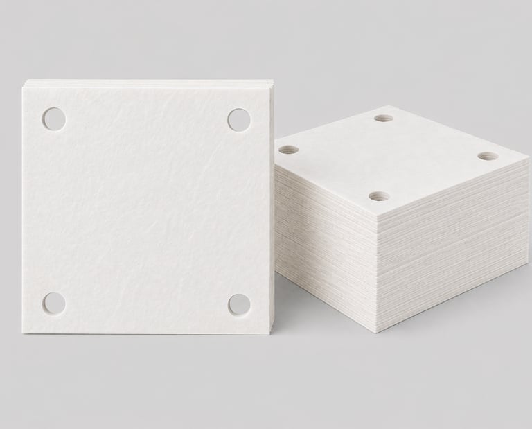 Elementos filtrantes para filtro prensa são desenvolvidos em polipropileno meltblown, garantindo alta eficiência na retenção de partículas sólidas e excelente desempenho operacional.